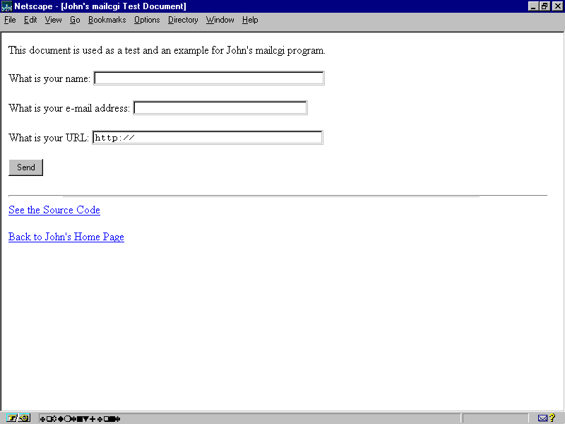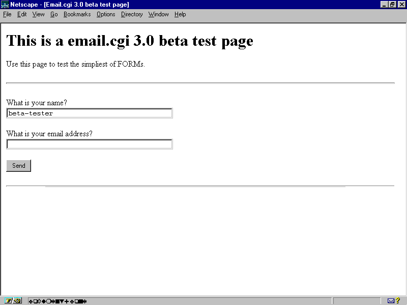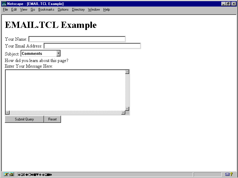This is an example of the TCL-based email.tcl CGI script's HTML form interface.