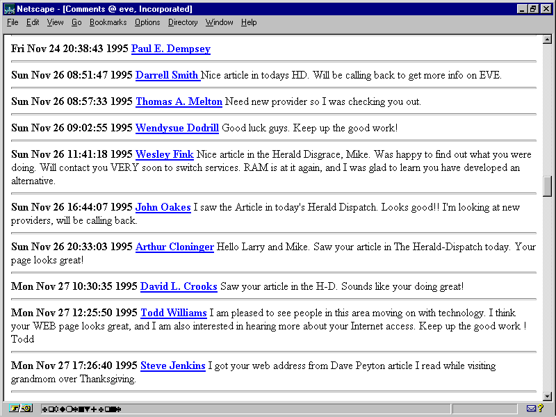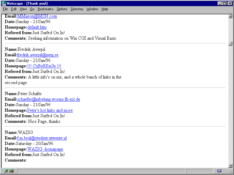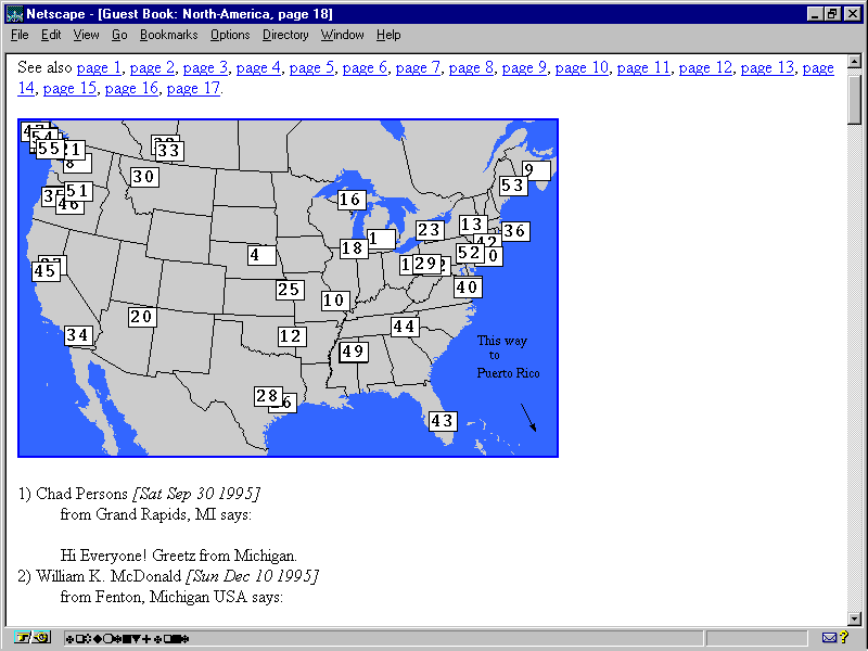 This section of the guestbook.html log file was created with the Perl CGI script guestbook.pl.