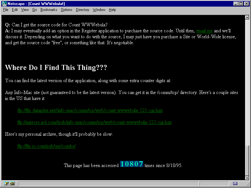 Notice the graphic numbers at the bottom of this example, which was created by the page-hit counter Count WWWebula.