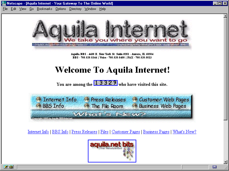 Aquila Internet's home page uses Chris Babb's counter.