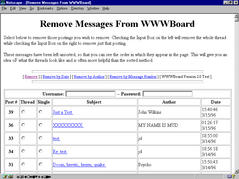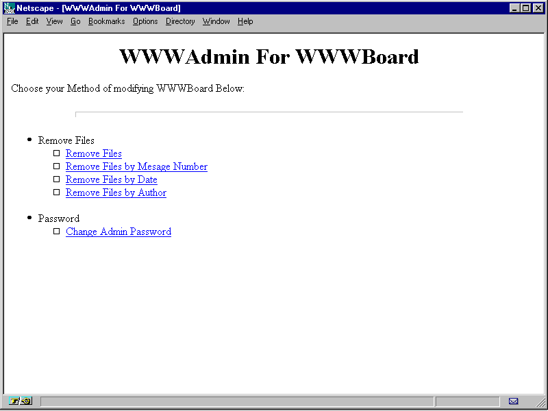 Here is a look at the WWWAdmin tools for WWWBoard.