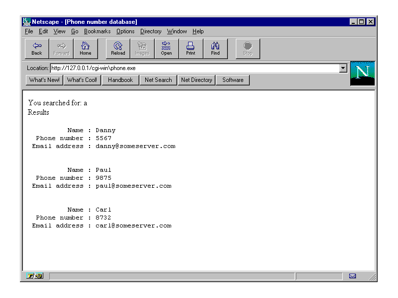 Your completed Web-searchable phone number database should look something like figure 21.9 on your Web browser.