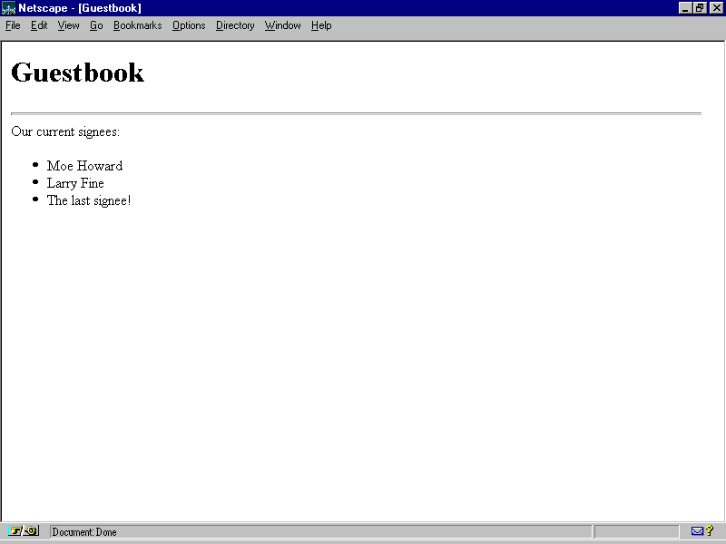 Finally, an ambitious hacker might write a program that connects to your server over the Web and pretends to be a Web browser. This program, though, could do things that no true Web browser would do, such as send a hundred megabytes of data to your CGI script. What would a CGI script do if it didn't limit the amount of data it read from a POST METHOD because it assumed that the data came from a small form? It would probably crash, and maybe crash in a way that would allow access to the person who crashed it.