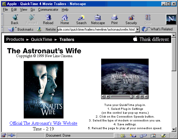 Come potete vedere, l'interfaccia del programma è molto semplice. È possibile mettere in pausa e riattivare la riproduzione agendo rispettivamente sul pulsante con le due barre verticali e sul pulsante freccia a destra, o bloccarla definitivamente mediante il pulsante con il quadratino. Il controllo del volume si effettua con il cursore verticale, se vogliamo 'scorrere' avanti e indietro nel video possiamo invece usare il cursore orizzontale (ogni volta, occorrerà comunque attendere che RealPlayer si 'sintonizzi' sulla porzione corretta del filmato). La barra dei canali, sulla sinistra di RealPlayer, consente di sintonizzare automaticamente alcune fonti di 'Internet Broadcasting' come la CNN senza neanche bisogno di avviare il browser. La piccola finestra sulla destra è quella nella quale compare il video che stiamo ricevendo. Attraverso il menu 'Visualizza' si può passare dall'interfaccia standard a una più compatta e si può scegliere se visualizzare o no le informazioni di copyright sul file che stiamo ricevendo. Si noti che durante la riproduzione è possibile continuare la navigazione sulle pagine Web (anche se essa risulterà naturalmente rallentata). I siti che offrono servizi RealPlayer su Internet sono molti, e aumentano costantemente. In alcuni casi si tratta di vere e proprie radio o televisioni che trasmettono in tempo reale; in altri si trovano registrazioni in differita. Per avere un elenco (parziale!) di queste risorse, consigliamo di vistare la Real Guide, all'indirizzo http://realguide.real.com/. Una alternativa è rappresentata anche da alcuni programmi che integrano a RealPlayer una sorta di 'database' di canali; uno dei migliori è EarthTuner (http://www.earthtuner.com/). Per quanto riguarda l'Italia, le 'emittenti' in formato Real sono numerose: oltre alla RAI, radio come Italia Radio e RadioCapital, alcune televisioni private, e naturalmente anche trasmissioni 'casalinghe' realizzate da appassionati. Anche noi abbiamo utilizzato lo streaming Real per inserire sul sito Internet di questo libro (http://www.laterza.it/internet/), e sul CD-ROM che vi trovate allegato alcune recensioni a Internet '98 trasmesse da programmi televisivi. Windows MediaPlayerAnche la Microsoft ha realizzato un proprio prodotto per la ricezione di informazione multimediale attraverso le tecnologie streaming: si tratta di Windows MediaPlayer, che - al momento in cui scriviamo - è arrivato alla versione 6.4 per Windows 95/98/2000; esistono anche una versione per Macintosh e una per Windows 3.1. Windows MediaPlayer può essere scaricato gratuitamente sul sito Microsoft (all'indirizzo http://www.microsoft.com/windows/mediaplayer/download/allplayers.asp), ed è inserito come componente standard in Windows 98 e Windows 2000. Il programma è in grado di riconoscere e riprodurre automaticamente numerosi formati di file sonori e visivi, sia in tecnologia streaming sia 'normali'. Se volete provarlo, una possibilità 'nostrana' di particolare interesse è rappresentata dal sito della Camera dei deputati (http://www.camera.it), che usa questo formato per la diretta audio-video delle sedute. Streaming audio e video con QuickTime 4Abbiamo già avuto occasione di parlare di QuickTime 4, la nuova versione del programma di riproduzione di file video di casa Apple. La novità maggiore di questa versione del programma è la capacità di gestire anche lo streaming audio e video, con una qualità che non ha certo nulla da invidiare a quella del RealPlayer o del MediaPlayer Microsoft. Nel campo delle tecnologie streaming, dunque, in cui negli anni passati la RealNetwork aveva sbaragliato la concorrenza di numerosi altri formati (quali Vivo o VDOLive - gli amanti della storia di Internet possono trovare informazioni al riguardo nelle vecchie edizioni di questo manuale, disponibili in rete o sul CD-ROM allegato), accanto al gigante Microsoft è apparso un nuovo, temibile contendente. Il Player QuickTime esiste, come quello Real, in una versione gratuita (caratterizzata da una fastidiosa finestra che ad ogni attivazione 'consiglia' di comprare la versione a pagamento) e una, con un numero maggiore di funzionalità, in vendita a 29.99 dollari. Entrambe possono essere scaricate dal sito http://www.apple.com/quicktime/ ed esistono sia per Windows che per Mac.