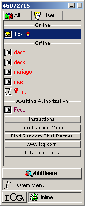 ICQ e i sistemi di instant messagingIRC è uno strumento prezioso per partecipare a vere e proprie 'conferenze' testuali in tempo reale. Ma cosa fare se, anziché conversare disordinatamente con decine di altre persone, volessimo colloquiare in tutta tranquillità con uno o due amici o colleghi? Una possibilità, naturalmente, consiste nel collegarsi contemporaneamente a IRC e creare un 'canale' riservato. O, se si è solo in due, è possibile usare il vecchio comando Unix 'talk', o i suoi più moderni equivalenti grafici come Wintalk (lo trovate su TuCows). Ma per utilizzare questi strumenti è necessario mettersi d'accordo in anticipo con i nostri interlocutori e stabilire ora e luogo (ancorché virtuale) dell'incontro. Inoltre, le procedure da seguire non sono sempre semplicissime. Per ovviare a tutti questi problemi è stata sviluppata una tecnologia che ha riscosso in brevissimo tempo un enorme successo [23]: si tratta dei cosiddetti sistemi di instant messaging. Essi mutuano da IRC molte caratteristiche tecniche e funzionali, ma vi aggiungono un aspetto nuovo: la possibilità di informare automaticamente gli utenti della 'presenza' in rete dei loro corrispondenti. Inoltre i vari software di instant messaging possono essere corredati da numerose altre funzionalità come lo scambio di file, la condivisione di risorse o la capacità di avviare automaticamente sessioni di videoconferenza (di cui parleremo poco sotto). Al momento esistono varie tecnologie concorrenti in questo settore, in genere caratterizzati dall'adozione di soluzioni proprietarie e chiuse verso l'esterno. Due, Aol Instant Messenger (ora incluso in Netscape) e ICQ, sono di proprietà del grande provider americano AOL. Un terzo, PowWow, è ancora in mano alla Tribal Voice (http://www.tribal.com), la piccola azienda che lo ha sviluppato. Ma dall'estate del '99 sono scesi in questa arena anche Yahoo (con il suo Yahoo! Messenger) e Microsoft (MSN Messenger), e ne è derivata subito una guerra con l'attuale leader AOL. Le funzionalità di questi programmi, pur nelle rispettive specificità, sono abbastanza simili. Di conseguenza abbiamo deciso di soffermarci su quello che al momento gode della maggiore diffusione e della maggiore 'anzianità di servizio': ICQ. Nel CD-ROM allegato a questo manuale troverete comunque, accanto a ICQ, anche MSN Messenger (programma su CD): non è improbabile, infatti, che quest'ultimo venga integrato nelle prossime versioni di Internet Explorer, sfruttandone l'enorme bacino di utenza. ICQ è stato sviluppato - come spesso accade nel mondo Internet - da una software house piccola e innovativa, la Mirabilis (http://www.mirabilis.com) che nel 1998 è stata acquisita da AOL. Esso si basa su un server centrale al quale si collegano i moduli client, distribuiti gratuitamente. Nel momento in cui scriviamo, la versione più aggiornata del modulo client è 'ICQ99b', uscita nel luglio 1999 e disponibile per varie piattaforme. Si tratta di un programma che funziona in background sul computer dell'utente (per gli utenti Windows l'icona del software appare nella parte destra della barra delle applicazioni) e che, nel momento in cui questi si collega ad Internet, informa il server centrale della sua presenza on-line. Per fare questo, alla prima utilizzazione ICQ assegna a ciascun utente un numero personale univoco (UIN) che diventa il suo identificativo in rete. In tal modo il server dispone in ogni momento di un quadro preciso di quali fra gli utenti di ICQ sono on-line e di qual è il loro indirizzo IP, di qual è cioè la strada per raggiungerli. Ciascun utente, a sua volta, può segnalare ad ICQ quali siano i suoi corrispondenti abituali: previa loro autorizzazione, il programma sarà in grado di indicargli in ogni momento chi fra loro è on-line e chi non lo è. Se la persona con cui si desidera colloquiare è on-line, è possibile contattarla e avviare con lei una sessione chat in tempo reale: ICQ si occupa automaticamente di trasmettere la richiesta e - se è accettata - di gestire il chat, al quale possono partecipare anche più persone, attraverso comode finestre affiancate. In sostanza, ICQ serve a tenere in contatto gli amici o i colleghi 'di rete'. Quando capita di essere collegati insieme, è possibile accorgersene, 'chattare' senza difficoltà, e compiere una serie di operazioni ulteriori come lo scambio di file. È anche possibile inviare ai corrispondenti - anche quando non sono collegati - dei messaggi assai simili a quelli di posta elettronica. Inoltre la disponibilità di uno strumento di questo tipo semplifica enormemente l'uso di programmi di telefonia e videotelefonia in rete. Non a caso, la Mirabilis ha creato una versione di ICQ appositamente studiata per integrarsi con Netmeeting (il software per videoconferenze della Microsoft). Naturalmente, qualcuno potrebbe trovare poco desiderabile il fatto che i suoi amici o conoscenti possano accorgersi in ogni momento se sia collegato a Internet o meno, e possano inviargli una richiesta di chat. Per garantire la privacy, tuttavia, ICQ permette di impostare vari livelli di visibilità che possono essere selezionati mediante il pulsante in basso nella finestra del programma: si va dall'opzione 'Offline/Disconnect' (l'utente appare ai tutti i suoi corrispondenti come 'scollegato' sebbene sia in effetti on-line) a quella 'Do not disturb' (l'utente appare come collegato ma non disponibile ad inteagire) a quella 'Occupied' (l'utente può ricevere solo richieste urgenti), e così via. E naturalmente è sempre possibile chiudere del tutto il programma, in modo che neanche il server della Mirabilis sappia se siamo o no in rete.
