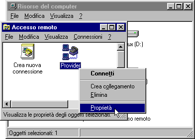 Armati di un foglio su cui sono annotate le risposte a tutti questi quesiti, passiamo a vedere quali siano le procedure di configurazione dell'accesso ad Internet per la varie piattaforme più diffuse nel mondo dei personal computer. La famiglia Microsoft WindowsCome è noto, la famiglia di sistemi operativi prodotti dalla Microsoft ha una supremazia quasi totale nel mercato dei personal computer. I vari aggiornamenti che si sono succeduti nel tempo e la comparsa di diverse varietà di sistemi accomunati dal marchio Windows, ha fatto sì che oggi siano in circolazione almeno sei o sette diverse piattaforme di questa famiglia. Attualmente, il sistema operativo installato di serie su quasi tutti i personal computer IBM compatibili di fascia bassa e media è Windows 98. Sono destinati invece ai PC di fascia alta, alle workstation e ai server i sistemi operativi Microsoft basati sulla tecnologia NT (New Technology), di cui, mentre scriviamo, è in fase di rilascio la nuova versione, battezzata Windows 2000. A tutti coloro che intendono dotare il proprio personal di uno di questi sistemi dobbiamo ricordare che le prestazioni di Windows 95 sono sensibilmente migliori rispetto a quelle di Windows 3.1 solo su macchine 486, o superiori, con almeno 16 Mb di RAM. Windows 98 sostanzialmente richiede la stessa configurazione di Windows 95 (anche se un po' di memoria in più non fa davvero male), ma è in grado di sfruttare meglio del suo predecessore le risorse della macchina sulla quale è installato. Per quanto riguarda NT è bene tenere presente che questo sistema operativo riesce ad utilizzare al meglio solo software a 32 bit e quindi molti programmi per DOS o Windows 3.x potrebbero avere problemi su questa piattaforma. Non bisogna sottovalutare il fatto che Windows NT 4/2000, pur essendo più potente, assorbe più risorse di Windows 95/98: è quindi consigliabile l'uso di NT solo se si dispone di almeno 128Mb di RAM e di un processore Pentium II o Pentium III. La connessione con Windows 95Iniziamo a vedere le procedure di accesso alla rete con Windows 95 (filmato su CD). Facciamo qui riferimento alla versione 'standard' del sistema operativo; tenete comunque presente che alcune delle operazioni qui descritte sono state semplificate dai moduli di configurazione guidata forniti con Internet Explorer 4 e 5 (usciti successivamente a Windows 95). Se usate questi browser, dunque, potrete eseguire la procedura di connessione guidata anziché applicare le istruzioni che seguono. La nuova procedura guidata è molto simile a quella utilizzata da Windows 98, alla cui trattazione dunque vi rimandiamo. Innanzitutto occorre controllare se sono stati correttamente installati insieme al sistema operativo i programmi necessari per fare la chiamata via modem al provider. Andiamo a dare un'occhiata a 'Risorse del computer' facendo un doppio click sull'icona: se esiste la cartella 'Accesso remoto' siamo a buon punto, i protocolli e i driver necessari sono già al loro posto! Qualora non dovessimo trovare la cartella 'Accesso remoto' procediamo come segue: