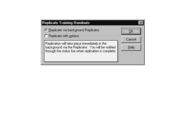 You can replicate, or copy, your databases to and from the server for use when youre working remotely. Doing so ensures that youll always have up-to-date material with which to work and that your co-workers will have access to changes you make to the databases as well.