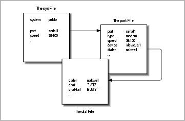 In contrast to simpler file transfer programs, UUCP was designed to be able to handle all transfers automatically. Once it is set up properly, interference by the administrator should not be necessary on a day-to-day basis. The information required for automated transfer is kept in a couple of configuration files that reside in the /usr/lib/uucp directory. Most of these files are used only when dialing out.