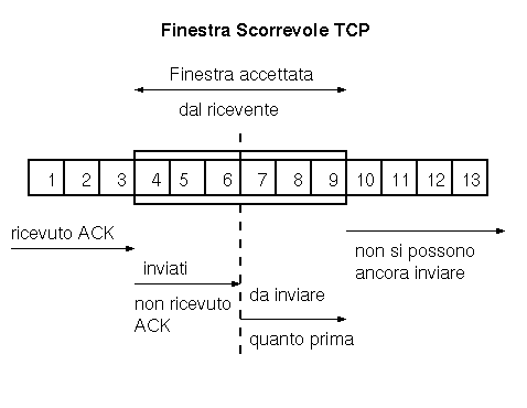 In seguito all'ACK il trasmittente invia dal pacchetto successivo a quello di cui ha ricevuto lo ACK, un numero di segmenti uguale al precedente. Il numero dei segmenti e' la dimensione della finestra, la quale e' scorrevole in avanti nella lista dei segmenti da inviare.