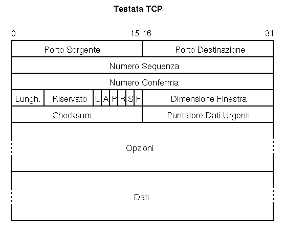Il campo Dimensione Finestra esprime la lunghezza della finestra di trasmissione in byte. TCP e' un protocollo a finestra di trasmissione scorrevole senza ritrasmissione selettiva.