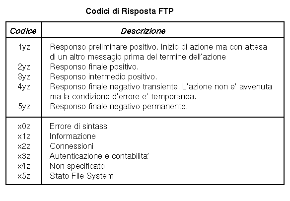 Normalmente un responso FTP e' su una sola linea. Nei responsi a piu' linee il codice numerico e' subito seguito da un trattino su tutte le linee tranne l'ultima, nella quale e' seguito da uno spazio.