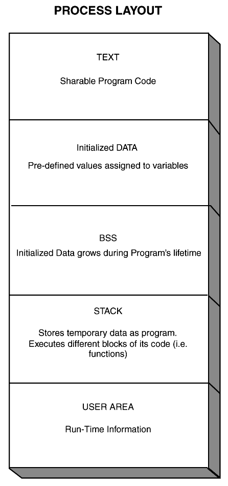 Process Run StatesA process moves between several states during its lifetime, although a process can only be in one state at any one time. Certain events, such as system interrupts, blocking of resources, or software traps will cause a process to change its run state. The kernel maintains queues in memory that it uses to assign a process to based upon that process's state. It keeps track of the process by its user ID. UNIX version System V Release 4 (SVR4) recognizes the following process run states: - SIDLE This is the state right after a process has issued When a process first starts, the kernel allocates it a slot in the process table and places the process in the SIDL state. Once the process has the resources it needs to run, the kernel places it onto the run queue. The process is now in the SRUN state awaiting its turn in the CPU. Once its turn comes for the process to be switched into the CPU, the kernel will tag it as being in the SONPROC state. In this state, the process will execute in either user or kernel mode. User mode is where the process is executing nonprivileged code from the user's compiled program. Kernel mode is where kernel code is being executed from the kernel's privileged address space via a system call. At some point the process is switched out of the CPU because it has either been signaled to do so (for instance, the user issues a stop signal--SSTOP state) or the process has exceeded its quota of allowable CPU time and the kernel needs the CPU to do some work for another process. The act of switching the focus of the CPU from one process to another is called a context switch. When this occurs, the process enters what is known as the SXBRK state. If the process still needs to run and is waiting for another system resource, such as disk services, it will enter the SSLEEP state until the resource is available and the kernel wakes the process up and places it on the SRUN queue. When the process has finally completed its work and is ready to terminate, it enters the SZOMB state. We have seen the fundamentals of what states a process can exist in and how it moves through them. Let's now learn how a kernel schedules a process to run. Process SchedulerMost modern versions of UNIX (for instance, SVR4 and Solaris 2.x) are classified as preemptive operating systems. They are capable of interrupting an executing a process and "freezing" it so that the CPU can service a different process. This obviously has the advantage of fairly allocating the system's resources to all the processes in the system. This is one goal of the many systems architects and programmers who design and write schedulers. The disadvantages are that not all processes are equal and that complex algorithms must be designed and implemented as kernel code in order to maintain the illusion that each user process is running as if it was the only job in the system. The kernel maintains this balance by placing processes in the various priority queues or run queues and apportioning its CPU time-slice based on its priority class (Real-Time versus Timeshare). Universities and UNIX system vendors have conducted extensive studies on how best to design and build an optimal scheduler. Each vendor's flavor of UNIX--4.4BSD, SVR4, HP-UX, Solaris, and AIX, to name a few--attempts to implement this research to provide a scheduler that best balances its customers' needs. The systems administrator must realize that there are limits to the scheduler's ability to service batch, real-time, and interactive users in the same environment. Once the system becomes overloaded, it will become necessary for some jobs to suffer at the expense of others. This is an extremely important issue to both users and systems administrators alike. The reader should refer to Chapter 22, "Systems Performance and Tuning," to gain a better understanding of what he can do to balance and tune his system. Memory ManagementRandom access memory (RAM) is a very critical component in any computer system. It's the one component that always seems to be in short supply on most systems. Unfortunately, most organizations' budgets don't allow for the purchase of all the memory that their technical staff feel is necessary to support all their projects. Luckily, UNIX allows us to execute all sorts of programs without, what appears at first glance to be, enough physical memory. This comes in very handy when the system is required to support a user community that needs to execute an organization's custom and commercial software to gain access to its data. Memory chips are high-speed electronic devices that plug directly into your computer. Main memory is also called core memory by some technicians. Ever heard of a core dump? (Writing out main memory to a storage device for post-dump analysis.) Usually it is caused by a program or system crash or failure. An important aspect of memory chips is that they can store data at specific locations called addresses. This makes it quite convenient for another hardware device called the central processing unit (CPU) to access these locations to run your programs. The kernel uses a paging and segmentation arrangement to organize process memory. This is where the memory management subsystem plays a significant role. Memory management can be defined as the efficient managing and sharing of the system's memory resources by the kernel and user processes. Memory management follows certain rules that manage both physical and virtual memory. Since we already have an idea of what a physical memory chip or card is, we will provide a definition of virtual memory. Virtual memory is where the addressable memory locations that a process can be mapped into are independent of the physical address space of the CPU. Generally speaking, a process can exceed the physical address space/size of main memory and still load and execute. The systems administrator should be aware that just because she has a fixed amount of physical memory, she should not e