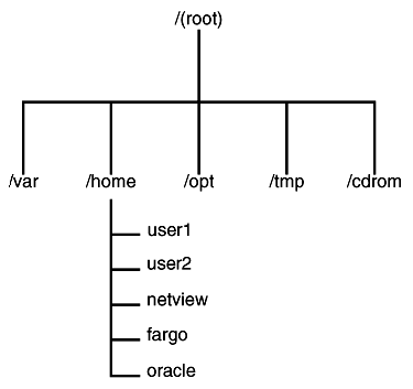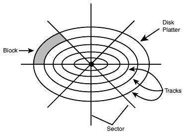 Note: NFS stands for Networked FileSystem Hardware ArchitectureSince filesystems are stored on disk, the systems administrator should look at basic disk hardware architecture before proceeding with specifics of filesystems. A disk is physically divided into tracks, sectors, and blocks. A good representation of a sector would be a piece of pie removed form the pie pan. Therefore, as with a pie, a disk is composed of several sectors (see Figure 19.3). Tracks are concentric rings going from the outside perimeter to the center of the disk, with each track becoming smaller as it approaches the center of the disk. Tracks on a disk are concentric, therefore they never touch each other. The area of the track that lies between the edges of the sector is termed a block, and the block is the area where data is stored. Disk devices typically use a block mode accessing scheme when transferring data between the file management subsystem and the I/O subsystem. The block size is usually 512- or 1024-byte fixed-length blocks, depending upon the scheme used by the operating system. A programmer may access files using either block or character device files. Figure 19.3. You now have a basic understanding of the terms tracks, sectors, and blocks as they apply to a single platter disk drive. But most disk today are composed of several platters with each platter having its own read/write head. With this in mind, we have a new term: cylinder (see Figure 19.4). Let's make the assumption that we have a disk drive that has six platters so, logically, it must have six read/write heads. When read/write head 1 is on track 10 of platter 1, then heads 2 through 6 are on track 10 of their respective platters. You now have a cylinder. A cylinder is collectively the same track on each platter of a multi-platter disk. Figure 19.4. Filesystem Concepts and FormatThe term filesystem has two connotations. The first is the complete hierarchical filesystem tree. The second is the collection place on disk device(s) for files. Visualize the filesystem as consisting of a single node at the highest level (ROOT) and all other nodes descending from the root node in a tree-like fashion (see Figure 19.5) . The second meaning will be used for this discussion, and Hewlett Packard's High-performance Filesystem will be used for technical reference purposes. Figure 19.5. The superblock is the key to maintaining the filesystem. It's an 8 KB block of disk space that maintains the current status of the filesystem. Because of its importance, a copy is maintained in memory and at each cylinder group within the filesystem. The copy in main memory is updated as events transpire. The update daemon is the actual process that calls on the kernel to flush the cached superblocks, modified inodes, and cached data blocks to disk. The superblock maintains the following static and dynamic information about the filesystem. An asterisk will denote dynamically maintained information. Filesystem size Number of Inodes Location of free space Number of cylinder groups Fragment size and number Block size and number Location of superblocks, cylinder groups, inodes, and data blocks Total number of free data blocks Total number of free inodes Filesystem status flag (clean flag) As you can see from the listed information, the superblock maintains the integrity of the filesystem and all associated pertinent information. To prevent catastrophic events, the OS stores copies of the superblock in cylinder groups. The locations of these alternate superblocks may be found in /etc/sbtab. When system administrators are using fsck -b to recover from an alternate superblock, they will be required to give the location of that alternate block. Again, the only place to find that information is in /etc/sbtab. As a qualification to that statement, there is always an alternate superblock at block sixteen. Cylinder groups are adjacent groups of cylinders, 16 cylinders by default, that have their own set of inodes and free space mapping. This is done to improve performance and reduce disk latency. Disk latency is the time between when the disk is read and the I/O subsystem can transfer the data. Some factors that affect disk latency are rotational speed, seek time, and the interleave factor. This concept also associates the inodes and data blocks in closer proximity.