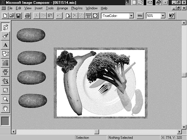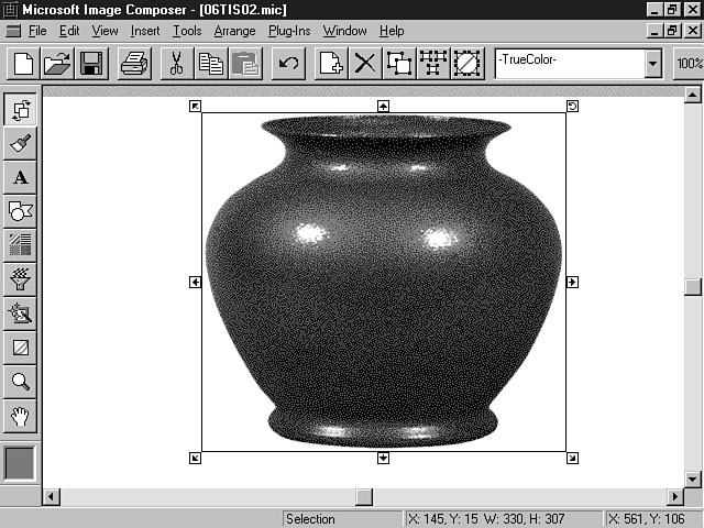 To truly learn about all of these features, you should practice with different sprites and effects. Image Composer provides many options for designing professional-looking compositions. Using the Impressionist Plug-InImage Composer supports the use of third-party plug-ins like Kai's Power Tools to further enliven your compositions. In this section, you use the Impressionist plug-in included with Image Composer.