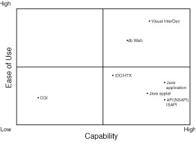 Ease of UseVisual InterDev offers a seamless environment that includes several database tools under one integrated roof. For this reason, Visual InterDev is very easy to use. You don't have to migrate between separate tools and environments to build your database connection and SQL calls as well as your formatted HTML web pages. Also, the Visual InterDev development environment provides toolbar and menu options to guide you through the process of adding database functionality into your web page. Visual EnvironmentVisual InterDev, as the name indicates, provides a visual environment with which to build your applications. This intuitive environment includes the Visual Data Tools, which you will learn more about tomorrow. These tools enable you to visually construct your SQL statements and immediately test the results. MS Access users love the interface of the tools because of the similarities between the two environments. You discovered the benefits of a visual tool to build your HTML web pages during the lesson on the FrontPage Editor for Visual InterDev in Week 1. The Visual Data Tools provide the same type of benefits to your database calls. You don't have to know the details of SQL to construct your queries. For power SQL programmers, the visual nature of the tools will save you time from programming the mundane and routine queries and enable you to spend time on the more complex SQL calls.