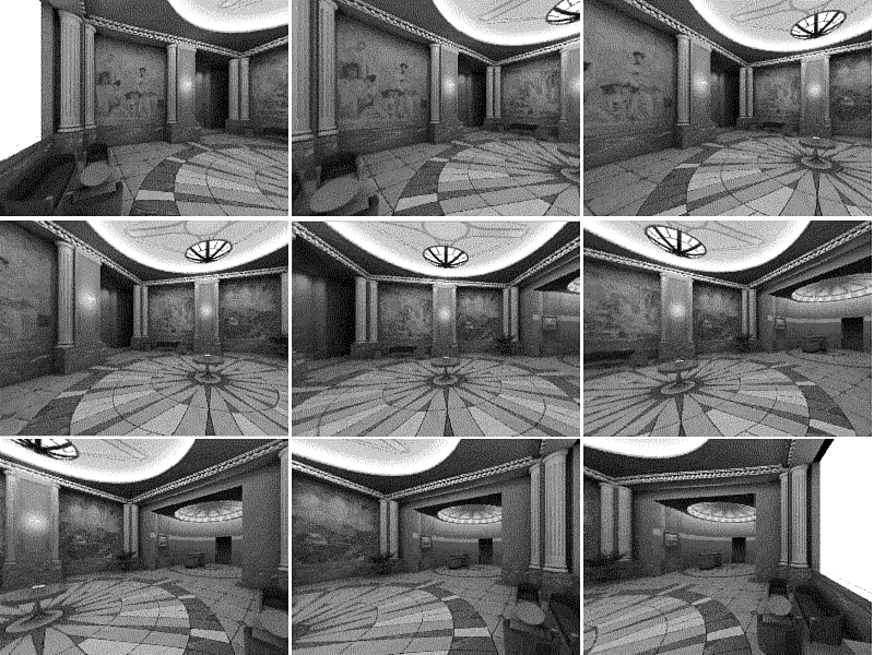 The view changes as you move the mouse around the image. The view can move left, right, up, or down. The Shift and Ctrl keys can be used to zoom into and out of a scene. Several views of the same room are shown in Figure 10.2.
