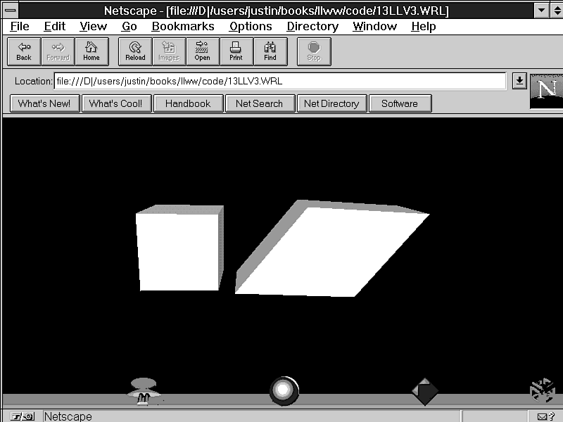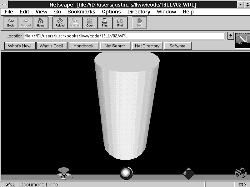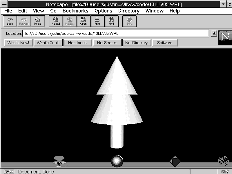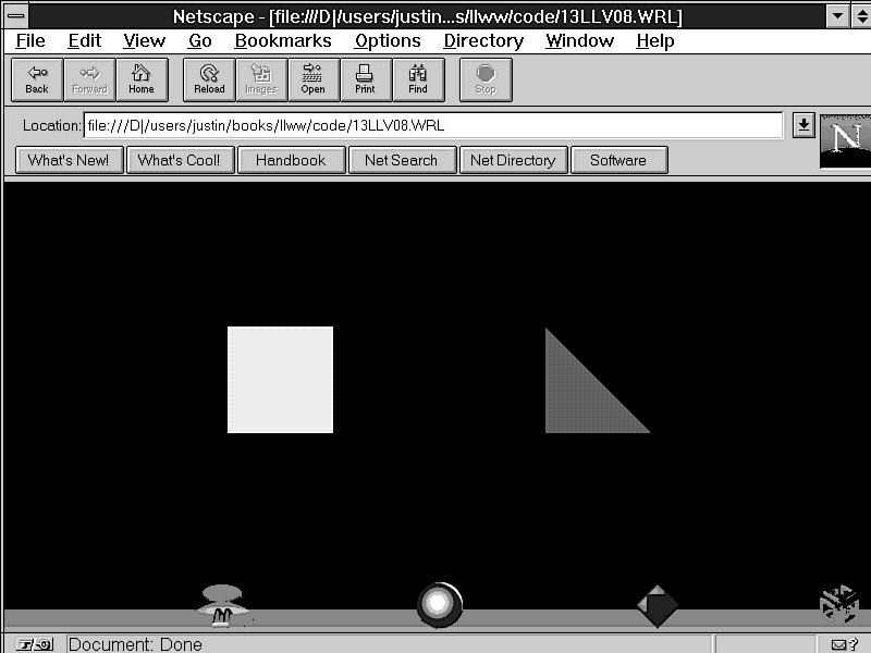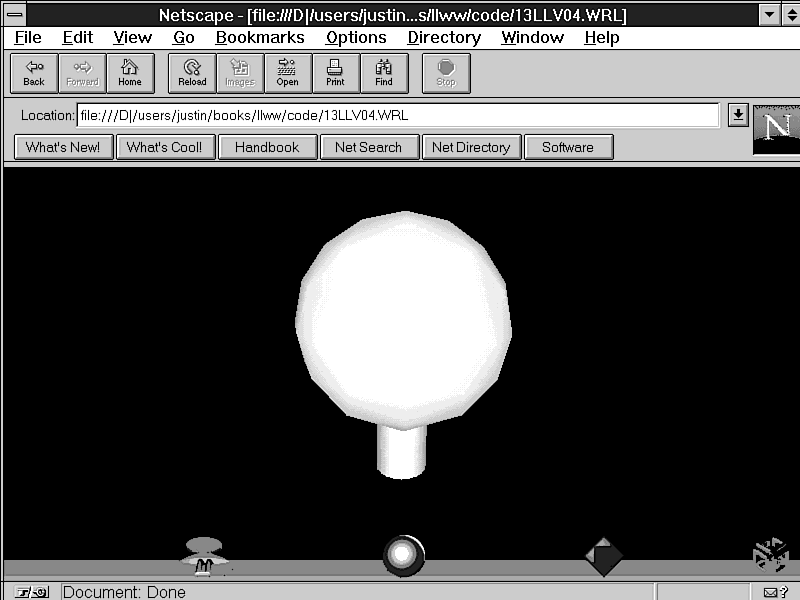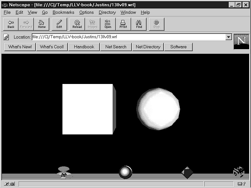 Figure 14.7 shows the results of this VRML file in the CosmoPlayer browser.