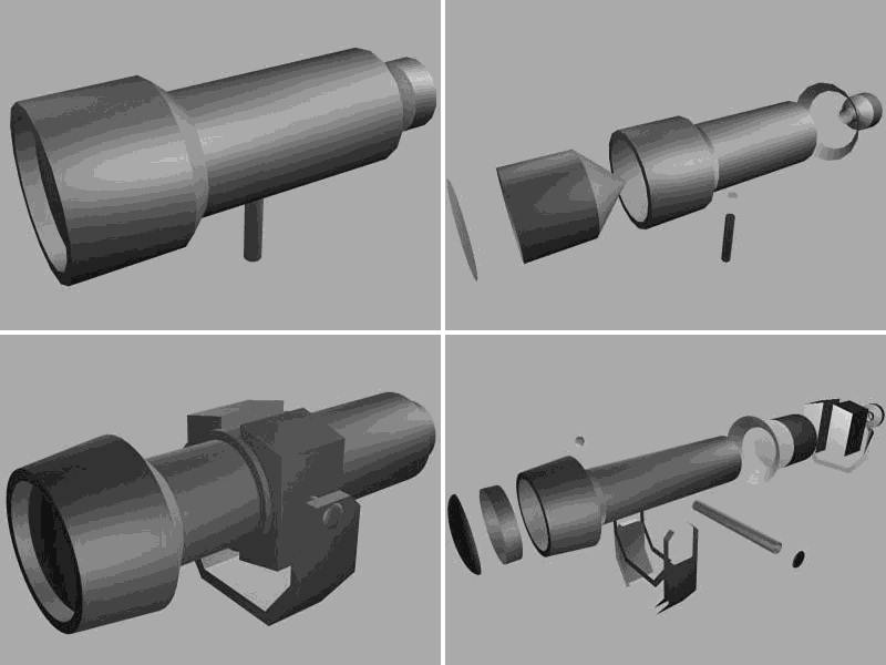 For the two most recent telescope designs, the design team has been asked to create a shaded image of the design and another image with all the parts separated, as shown in Figure 7.1.