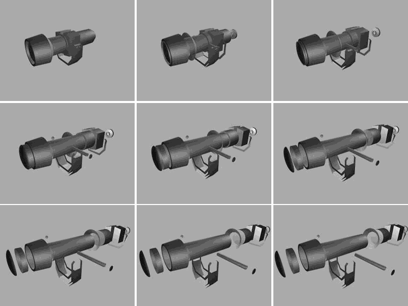 Figure 7.2: A frame-by-frame look at the parts that make up the latest telescope.