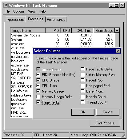 Customizing the display of Task Manager's Processes page.
