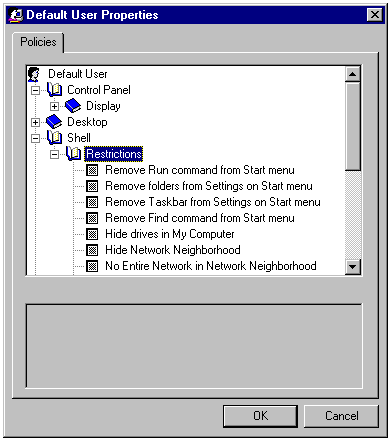 Restricting user options for Windows NT 4.0 PCs with the System Policy Editor.