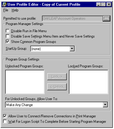 User profiles contain values of the user-definable settings that control the operating environment of client (and server) PCs running Windows NT 4.0. You create and edit Windows NT 4.0 user profiles for user groups and individual user accounts with Upedit.exe (see fig. 1.9).