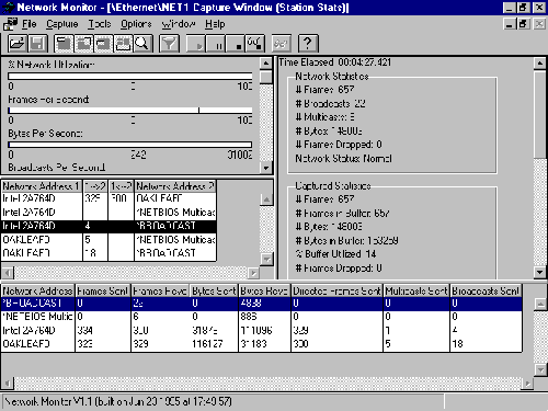 Figure 1.15 shows the default arrangement of Network Monitor's window. The following list describes the information presented in the window's four panes: