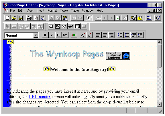 FrontPage 1.1's WYSIWYG Web page editing application.