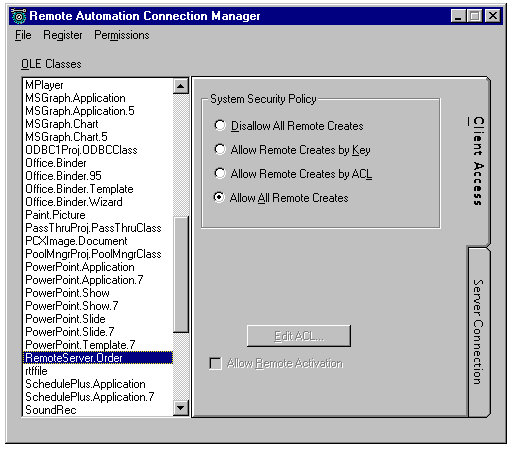 Setting up client access to a Remote Automation Object created with Visual Basic 4.0.