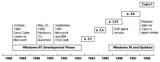 Windows NT is the result of a schism between Microsoft and IBM in their joint development program for OS/2 Presentation Manager. In October 1988, Microsoft hired David N. Cutler, the architect of Digital's VMS operating system for its VAX minicomputer, to create a 32-bit portable operating system to replace DOS. Coincidentally, IBM and Microsoft introduced OS/2 Presentation Manager in October 1988 (see fig. 3.1). Underlying the "sweetness and light" in the joint press releases of the day was Microsoft's desire to exercise control over the future direction of the design of OS/2. Dave Cutler put together a team to develop a "New Technology" operating system, while Microsoft continued to work with IBM to improve OS/2, which was required to run Microsoft's LAN Manager network operating system and the PC version of Sybase's SQL Server relational database management system, introduced in 1988 as Microsoft SQL Server.