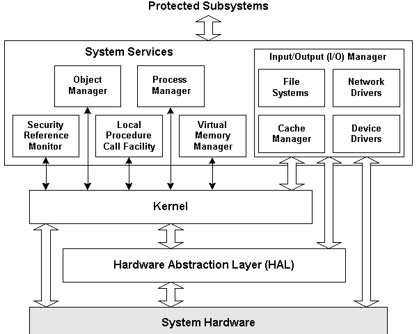 The following sections describe the basic elements of the Windows NT operating system from a bottom-up perspective.