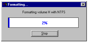 The status bar at the bottom of Disk Administrator's window isn't updated at the completion of the formatting process. To update the status bar, select another volume, and then reselect the newly created set.