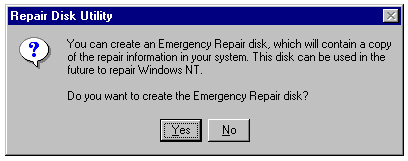If you don't create an emergency repair diskette after updating local repair information, it's likely that the repair diskette won't work when used in the event of a major system failure. In this case, your only alternative is to reinstall Windows NT Server 4.0.
