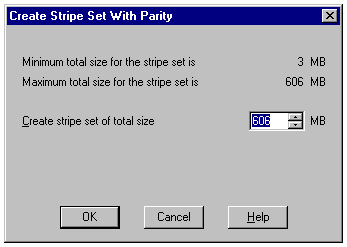 Setting the size of the RAID 5 stripe set in the Create Stripe Set with Parity dialog.
