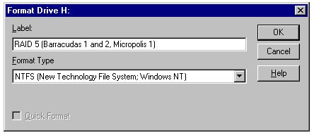 If you haven't previously formatted the free space used for the stripe set, clear the Quick Format check box. A full format tests for bad sectors during the formatting process and marks bad sectors unusable in the drive's sector map.