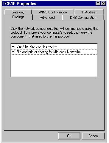 The Client for Microsoft Networks normally should be bound to TCP/IP. File and printer sharing for Microsoft Networks should be bound to TCP/IP only if you plan to use these services across a TCP/IP-based internetwork.