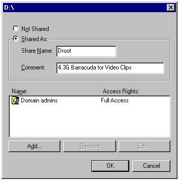Share-level access control allows each shared resource on the workstation to be protected by a workgroup password. Using Explorer, you right-click a local folder name and choose Sharing to specify whether that folder is to be shared. If the folder is shared, you may specify the following access security options: