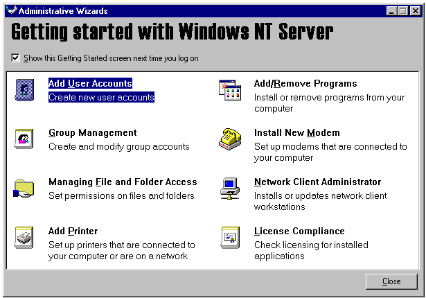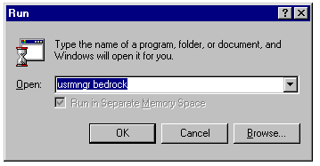 Alternatively, you can run User Manger from the Windows NT command prompt by typing the same commands as those shown in step 2.