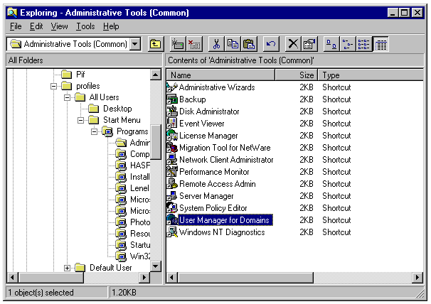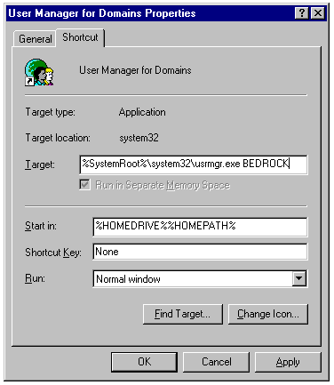The most effective method for running multiple instances of User Manager is to create program icons for each domain or computer that you administer. Each program icon contains the name of the domain or computer as the command-line argument to the program command line. By creating multiple instances of User Manager in this manner, you can administer each domain simply by double-clicking the program icon.