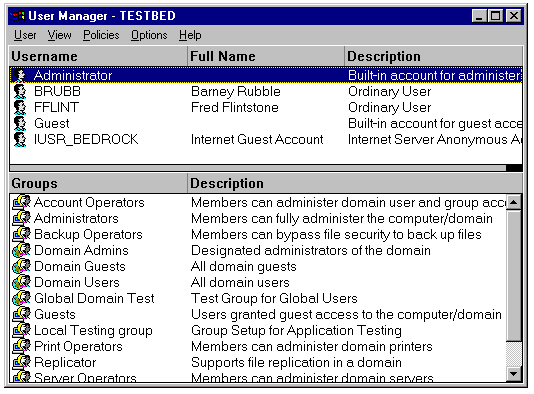You can employ User Manager for Domains to manage accounts within any domain to which the user has administrative access. Individual users have administrative access if they are members of any of the three Windows NT user groups shown in table 12.1.