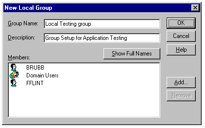 From User Manager's User menu, choose NewLocal Group to display the New Local Group dialog (see fig. 12.31).