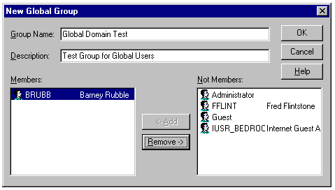 User Manager lets you create global groups in other domains if the other domain trusts your domain. You can set up a global group in the external domain, select the user accounts needed from the outside domain, and then assign that global group to a local group in your domain.