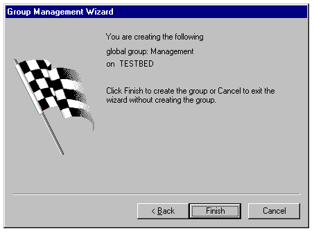 The last dialog (see fig. 12.41) confirms the name and the domain for the new group. Click Finish to add the new group to the domain.