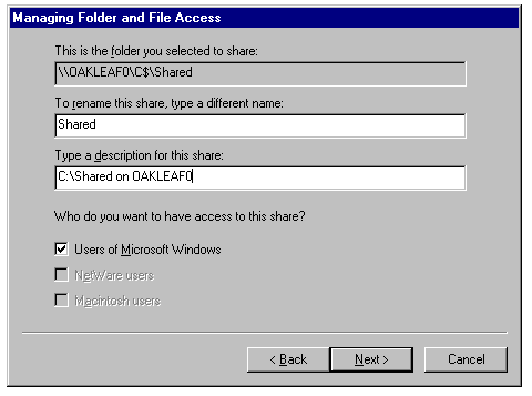 Sharing works with all three file systems supported by Windows NT Server--FAT,