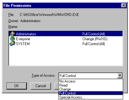 HPFS (Windows NT Server 3.x only), and NTFS. Shares are the only form of