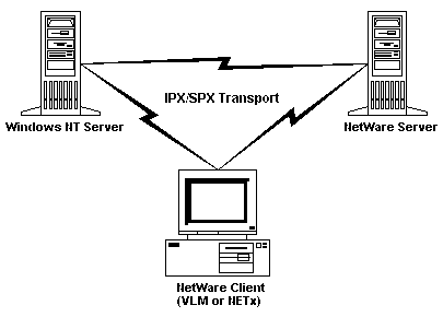 Many LAN administrators are faced with integrating a new Windows NT server into an existing network that includes a large installed base of NetWare clients. You may have scores or hundreds of clients, each already running Novell client software to access the existing NetWare servers. Visiting each workstation to install and configure new network client software is expensive, time-consuming, and disruptive. Fortunately, Microsoft offers a way to avoid this effort and cost by using the existing NetWare client software to access the new Windows NT server.