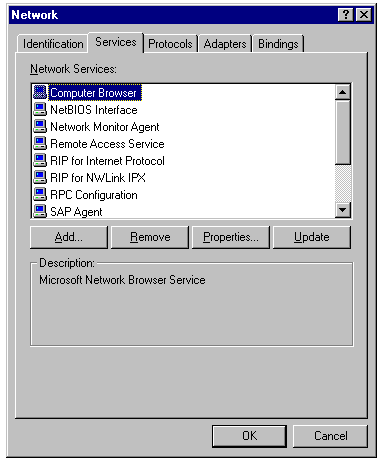 Displaying installed Network Services in the Network property sheet.