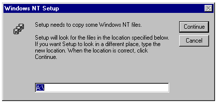 Specifying the location of the Gateway Service for NetWare distribution files in the Windows NT Setup dialog.