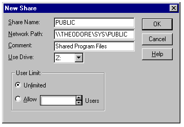 Entering a share name, specifying the associated network path, and designating a drive letter by which the share can be accessed.