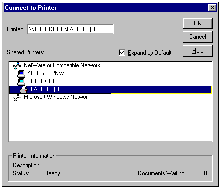 Displaying available print queues for a Windows NT server.